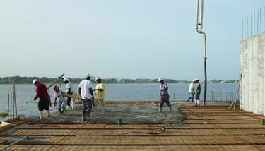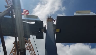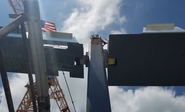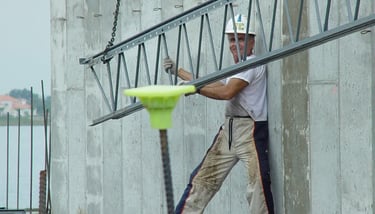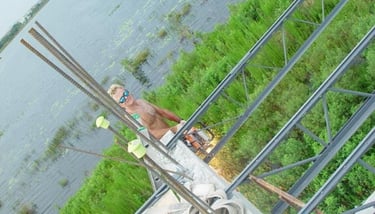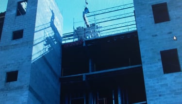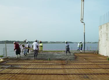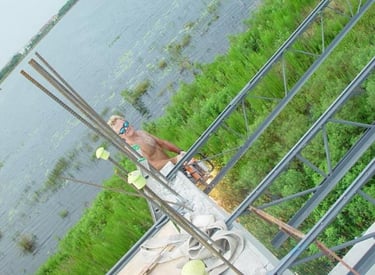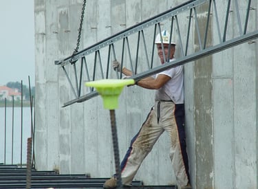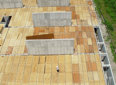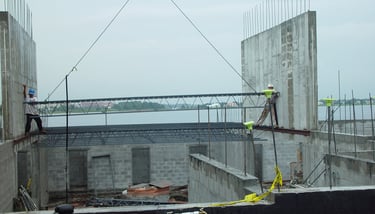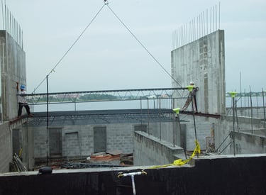 Also doing conventional stick frame decking with 4"x6" stringer on top of post-shores with 3/4" plywood deck and mats of steel and wire-mesh